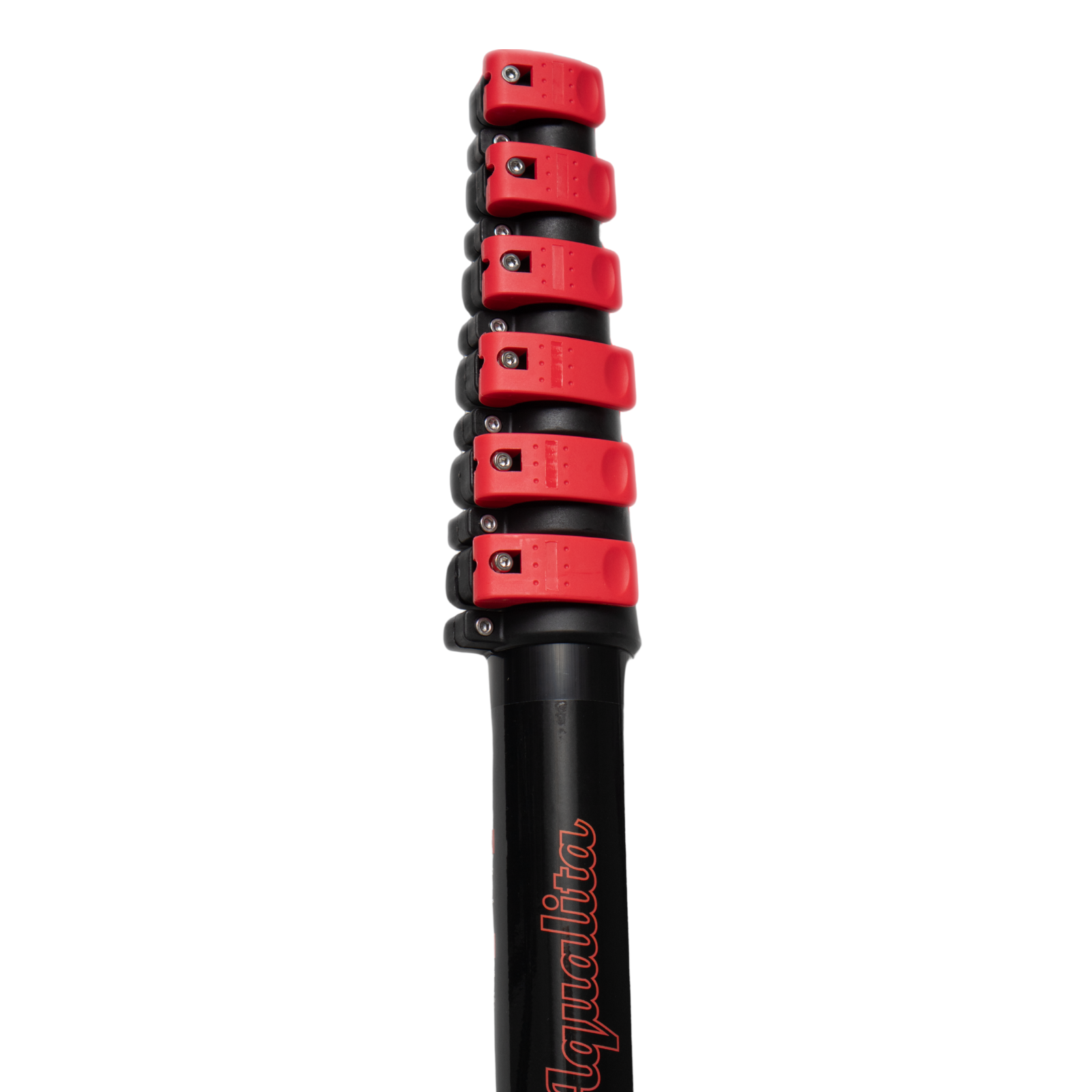 De telescopische steel van de Aqualita reinigingsborstel is uit te schuiven tot 4,6 meter, zodat je zonnepanelen, ramen en moeilijk bereikbare plekken gemakkelijk kunt reinigen.